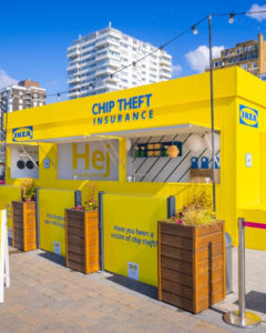 En 2025, c’est au tour d’Ikea. La marque s’apprêtant à ouvrir un magasin à Brighton, installe un kiosque d’assurance contre le vol de frites par les mouettes, animal emblématique de la ville côtière. Les affiches outdoor, elles, montrent des meubles Ikea recouverts de fientes de mouettes avec une seule ligne : « IKEA Brighton now open ».